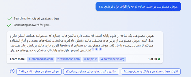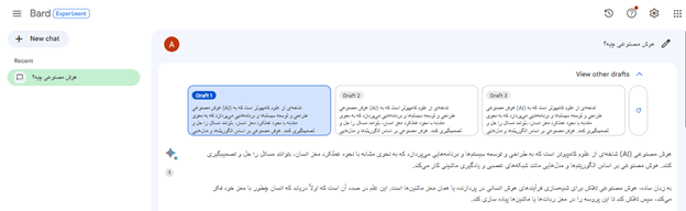 در مورد بارد هم باید بگوییم؛ ارائه ۳ پاسخ متفاوت برای هر سؤال توسط این چت بات یکی از نقاط قوت قابلتوجه آن محسوب میشود؛ زیرا میتوان با ترکیب مناسبترین محتوای آنها، به پاسخ خیلی خوبی دست یافت؛ اما متاسفانه در زمینه ارائه پاسخ دقیق و خلاقانه با جزئیات کافی، در مقابل ChatGPT و بینگ حرفی برای گفتن ندارد.