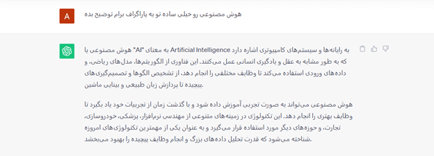 ارائه مفاهیم پیچیده بهصورت ساده: مثلاً این ابزار مفهوم پیچیدهای مثل هوش مصنوعی را با مثالهای بسیار ساده و قابلفهم برای کاربر توضیح میدهد. در کل پاسخهای ChatGPT در این زمینه نسبت به پاسخهای دو چت بات دیگر سادهتر است.