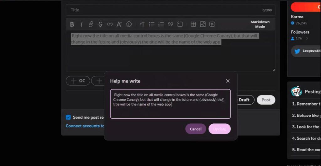 گوگل کروم با کمک قابلیت «Help me write» امکان ایجاد متن یا ویرایش آن با کمک هوش مصنوعی و نوشتن پرامپت (توضیح متنی در مورد درخواست) را فراهم کرده است. برای استفاده از این قابلیت تنها باید درخواست خود را در قالب پرامپت بنویسید و کار را به هوش مصنوعی بسپارید.